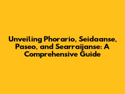 Phorario, Seidaanse, Paseo, And Searraijanse: What Are They?