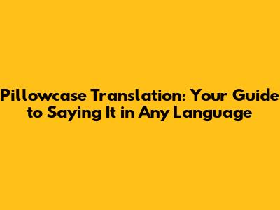 Pillowcase Translation: Your Guide To Saying It In Any Language