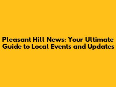 Pleasant Hill News: Your Local Guide To Events & Updates