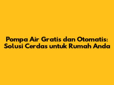 Pompa Air Gratis Dan Otomatis: Solusi Cerdas Untuk Rumah Anda