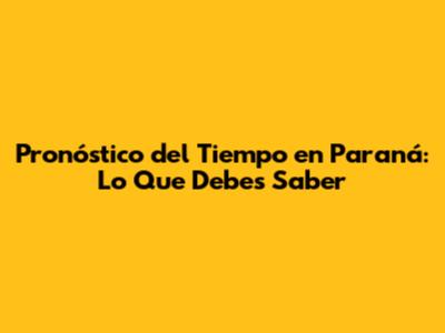 Pronóstico Del Tiempo En Paraná: Lo Que Debes Saber