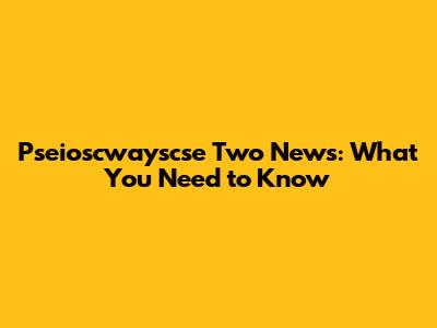 Pseioscwayscse Two News: What You Need To Know