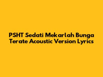 Let's dive into the heart of PSHT Sedati Mekarlah Bunga Terate, particularly the acoustic version, and explore its lyrics. For those of you who aren't familiar, PSHT (Persaudaraan Setia Hati Terate) is a well-known martial arts organization originating from Indonesia. The song "Sedati Mekarlah Bunga Terate" is an anthem that resonates deeply with its members, embodying the spirit, values, and philosophy of the organization. Now, when we talk about the acoustic version, it brings a different vibe altogether, stripping down the song to its raw essence, making it even more emotionally impactful.