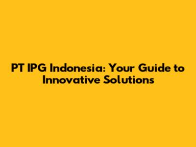 PT IPG Indonesia: Your Guide To Innovative Solutions