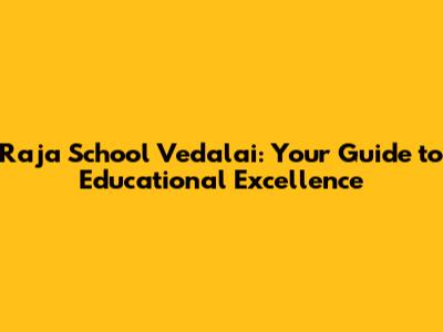 Raja School Vedalai: Your Guide To Educational Excellence