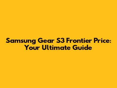 Understanding the Samsung Gear S3 Frontier Price
