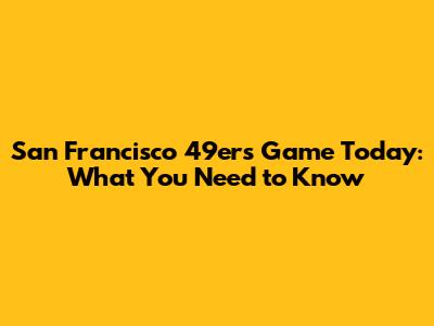 San Francisco 49ers Game Today: What You Need To Know