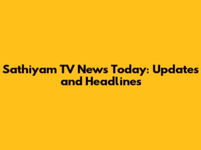 Sathiyam TV News Today: Updates And Headlines
