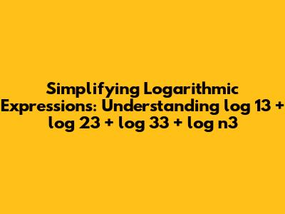 Hey guys! Today, we're diving into the fascinating world of logarithms to simplify the expression log 13 + log 23 + log 33 + log n3. Logarithms might seem intimidating at first, but with a few key rules and a bit of practice, they become surprisingly manageable. Our goal is to break down this expression step by step, making sure everyone understands the underlying principles. So, grab your thinking caps, and let's get started!