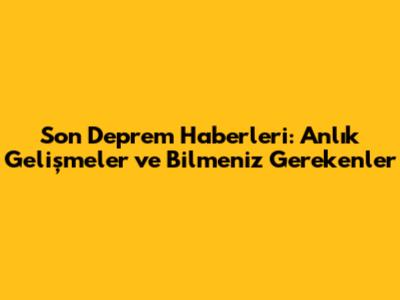 Son Deprem Haberleri: Anlık Gelişmeler Ve Bilmeniz Gerekenler