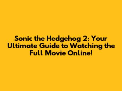 Sonic 2: Watch The Full Movie Online!