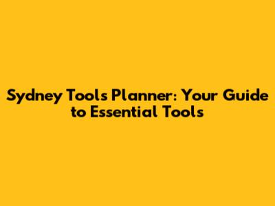 Sydney Tools Planner: Your Guide To Essential Tools