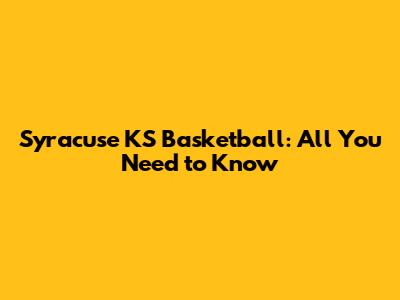 Syracuse KS Basketball: All You Need To Know
