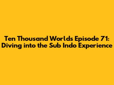 Hey everyone! Are you ready to dive into the captivating world of Ten Thousand Worlds? Specifically, we're going to explore Episode 71, and of course, we'll talk about the Sub Indo experience. For those unfamiliar, "Sub Indo" refers to Indonesian subtitles, making this amazing show accessible to a wider audience. So, buckle up, because we're about to explore the intricacies of Episode 71, and how you can enjoy it with Indonesian subtitles. This is your ultimate guide, covering everything from where to find the episode to what makes the Ten Thousand Worlds series so darn good. Let's get started, shall we?