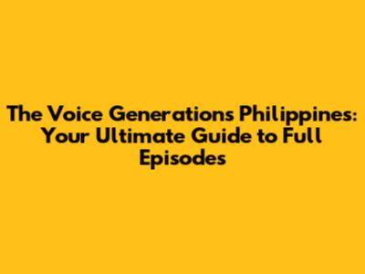 Where to Watch Full Episodes of The Voice Generations Philippines