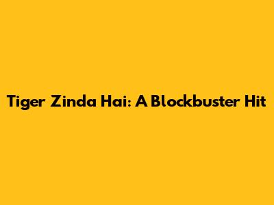 Tiger Zinda Hai: A Blockbuster Hit