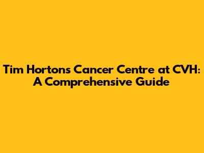 Tim Hortons Cancer Centre At CVH: A Comprehensive Guide