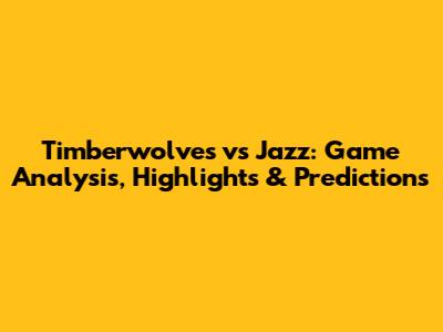Timberwolves Vs Jazz: Game Analysis, Highlights & Predictions