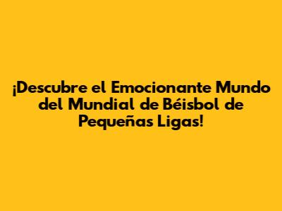 ¡Todo Sobre El Mundial De Béisbol De Pequeñas Ligas!