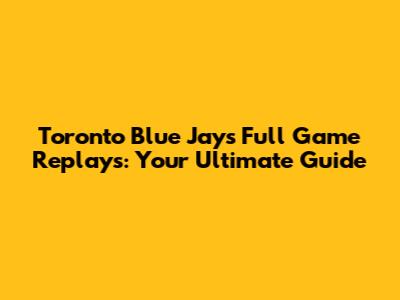 Toronto Blue Jays Full Game Replays: Your Ultimate Guide