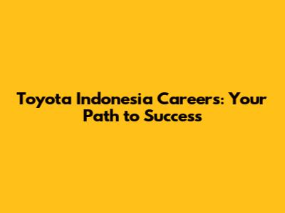 Toyota Indonesia Careers: Your Path To Success