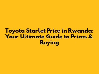 Toyota Starlet Rwanda: Your Ultimate Guide To Prices & Buying