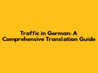 Traffic In German: A Comprehensive Translation Guide