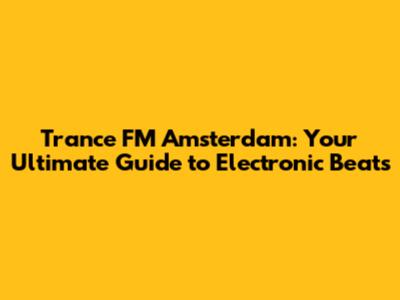Trance FM Amsterdam: Your Ultimate Guide