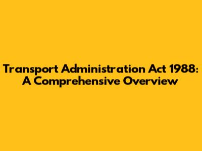 Transport Administration Act 1988: A Guide