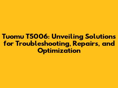 Tuomu T5006: Troubleshooting, Repairs, & Optimization