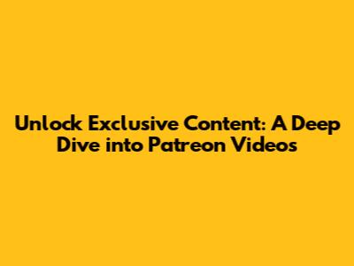 Unlock Exclusive Content: A Deep Dive Into Patreon Videos