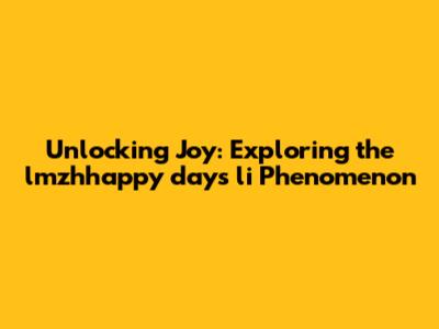 Unlocking Joy: Exploring The 'lmzhhappy Days Li' Phenomenon