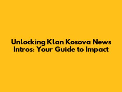 Unlocking Klan Kosova News Intros: Your Guide To Impact