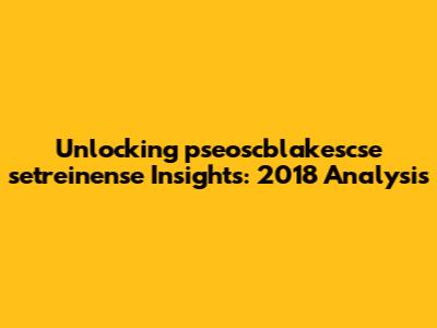 Unlocking Pseoscblakescse Setreinense Insights: 2018 Analysis