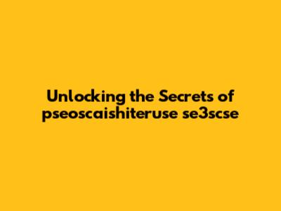 Unlocking The Secrets Of Pseoscaishiteruse Se3scse