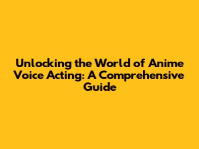 Unlocking The World Of Anime Voice Acting: A Comprehensive Guide