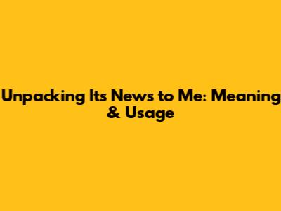 Unpacking 'It's News To Me': Meaning & Usage