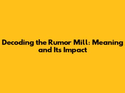 The Rumor Mill: Unveiling Its Meaning