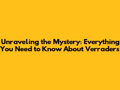 Unraveling The Mystery: Everything You Need To Know About 'Verraders'