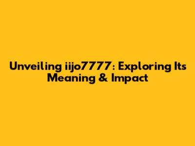 Unveiling Iijo7777: Exploring Its Meaning & Impact