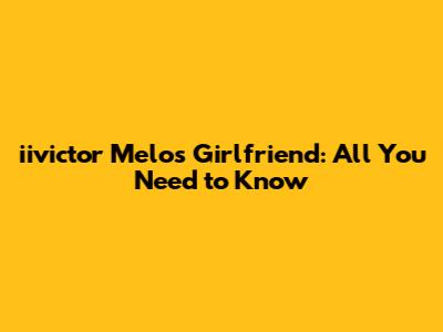 Unveiling Iivictor Melo's Love Life: Girlfriend Details
