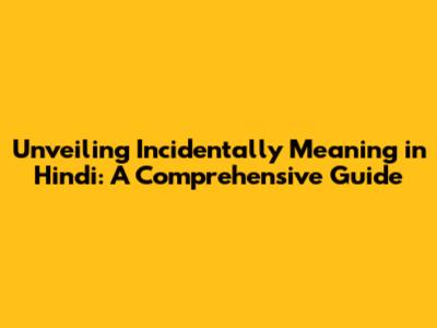 Unveiling 'Incidentally' Meaning In Hindi: A Comprehensive Guide