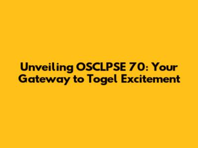 Unveiling OSCLPSE 70: Your Gateway To Togel Excitement