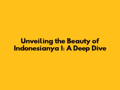 Unveiling The Beauty Of 'Indonesianya I': A Deep Dive
