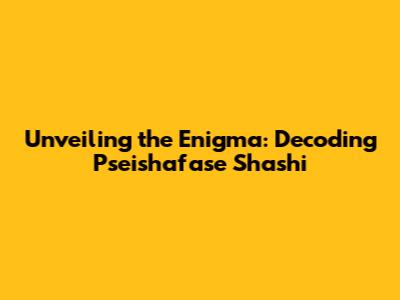 Unveiling The Enigma: Decoding Pseishafase Shashi