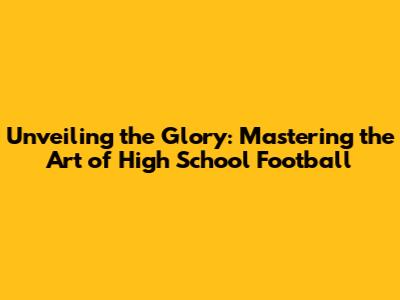 Unveiling The Glory: Mastering The Art Of High School Football