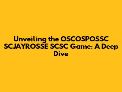 Unveiling The OSCOSPOSSC SCJAYROSSE SCSC Game: A Deep Dive