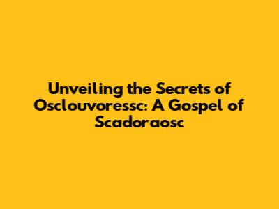 Unveiling The Secrets Of Osclouvoressc: A Gospel Of Scadoraosc