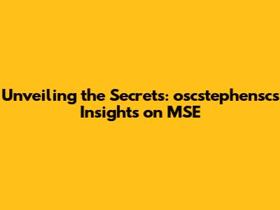 Unveiling The Secrets: Oscstephensc's Insights On MSE