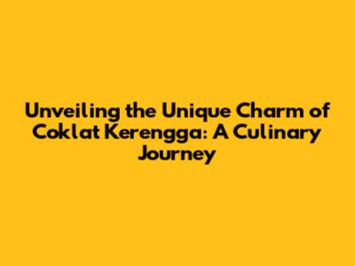Unveiling The Unique Charm Of Coklat Kerengga: A Culinary Journey